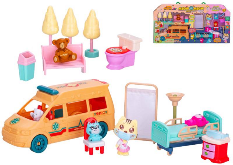 Zvířecí ordinace herní set s autem sanitka s doplňky 18ks plast