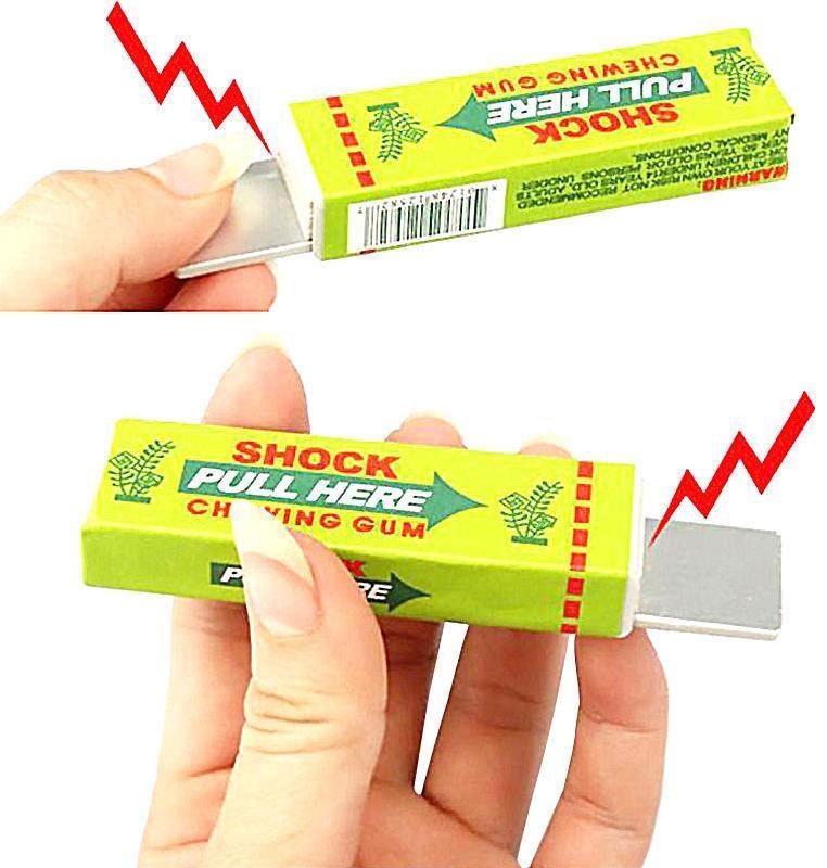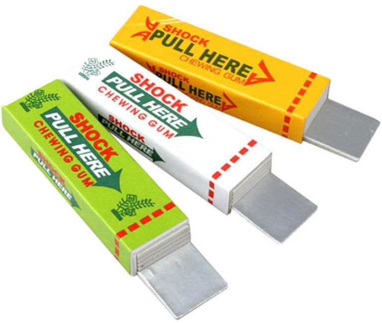 Vtipná a falešná napodobenina žvýkačky s velmi malým elektrickým šokem. Chceš své kamarády pěkně vyšokovat? Žvýkačka elektrošok je klasický kanadský žertík, který vypadá jako obyčejná žvýkačka – ale ouha! Když se pokusí někdo vytáhnout žvýkačku z balíčku, dostane velmi lehký elektrický šok. Perfektní vychytávka na oslavy, narozeninové párty nebo jako zkouška odvahy na firemním večírku. Udělejte si ze svého kamaráda dobrý den a nabídněte mu žvýkačku. Jakmile se ji pokusí vytáhnou z balíčku, dostane velmi slabý elektrický šok.